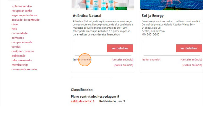 Há ainda a possibilidade de editar seu anuncio se seu plano assim permitir.