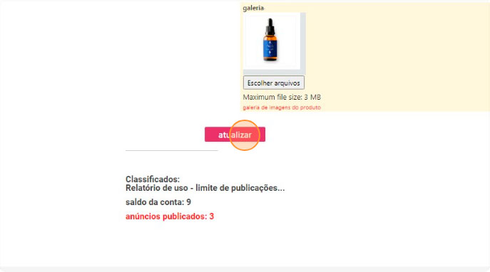 Click “atualizar”, se estiver editando seu anuncio ou publicar se for sua primeira postagem.