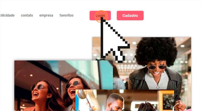 No cabeçalho do site você encontra a Logomarca o menu e os botões de “[Login]” e “[Cadastro]“